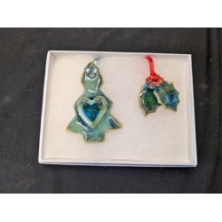 Holly and Tree decoration made from Porcelain and recycled glass.